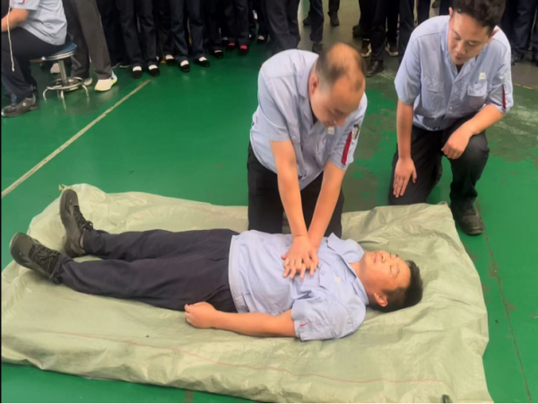 指令下達(dá),搶險(xiǎn)救援、醫(yī)療救護(hù)、警戒疏散、技術(shù)保障多組精銳聞令而動(dòng),火速集結(jié)。搶險(xiǎn)組披掛專業(yè)裝備率先抵達(dá),熟練運(yùn)用緩降器、擔(dān)架將“傷員”安全轉(zhuǎn)移至地面;醫(yī)療組無(wú)縫銜接,立即對(duì)“傷者”實(shí)施心肺復(fù)蘇、包扎止血等急救;警戒組快速清場(chǎng)布控;技術(shù)組同步展開(kāi)事故調(diào)查和設(shè)備隱患排查。多組高效協(xié)同、配合默契,險(xiǎn)情被迅速化解。